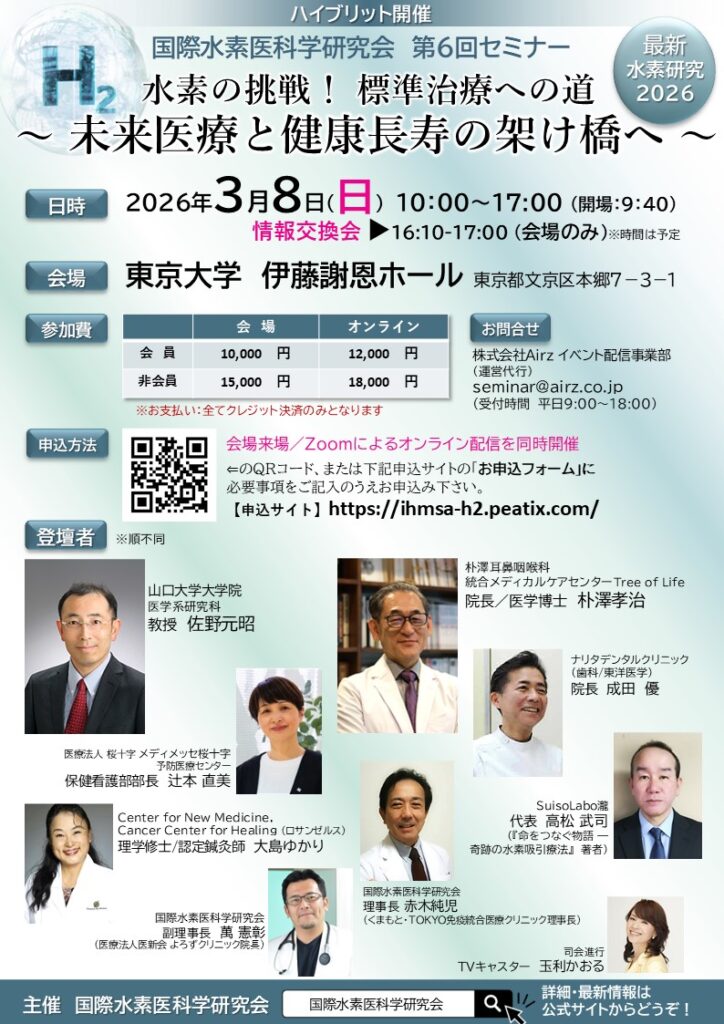 国際水素医科学研究会 第6回セミナー 最新水素研究2026